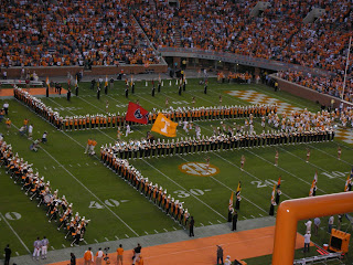 Last Saturday, we took Dakoda to his first UT football game. He loved it, especially the band! We were very happy (and surprised) with how well-behaved he was, considering that it was a night game and he was up wayyyy past his bedtime. We even got compliments from people sitting around us on his behavior! We are so blessed to have such a wonderful little boy! Here are some pictures from his game-day experience.